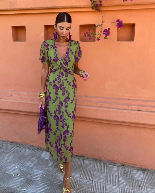 Mesh Long Bell Sleeve Taupe Flower Detail Mini Dress